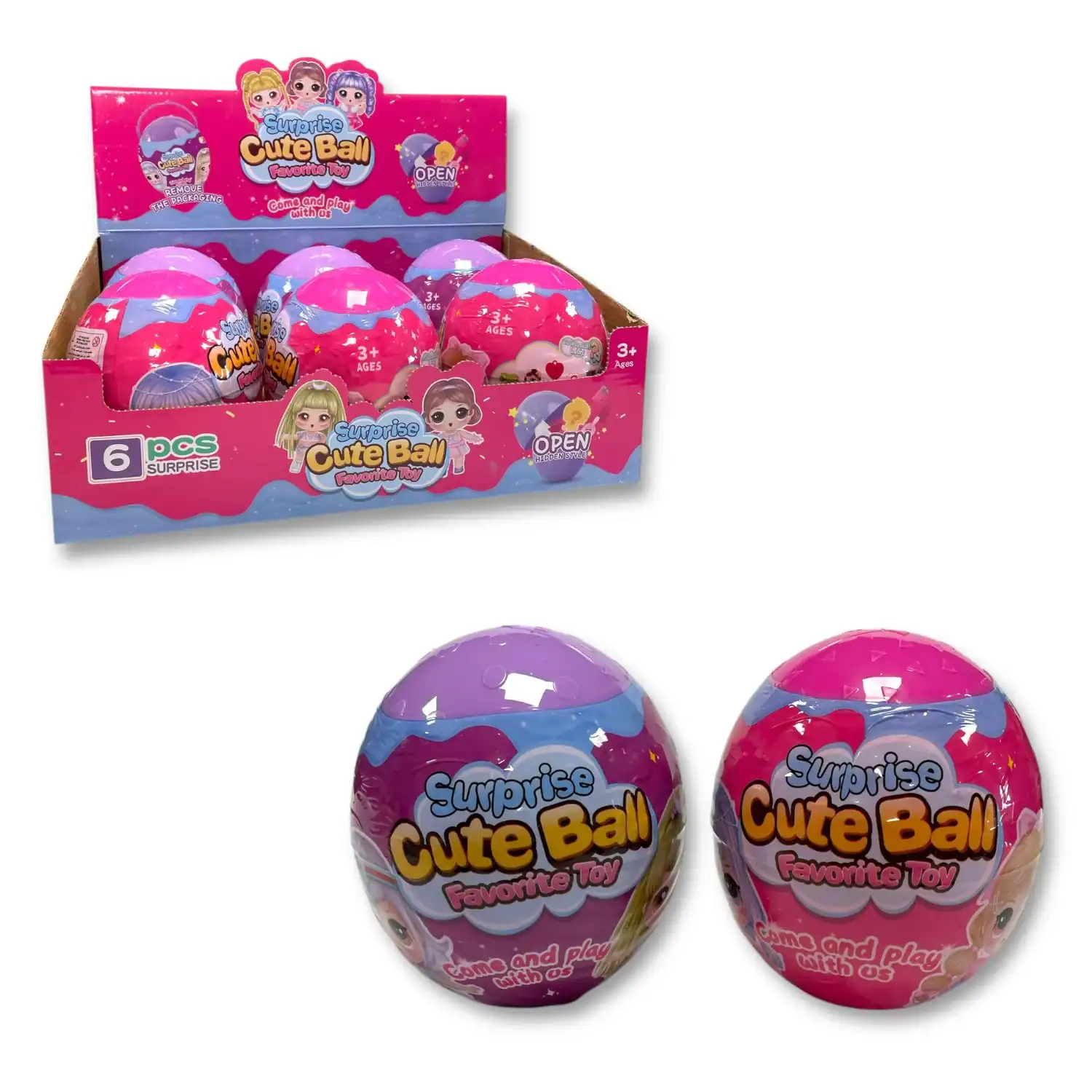 14CM SURPRISE OVAL BALL WITH MINI TOYS CDU X 6 (CTN QTY 36)
