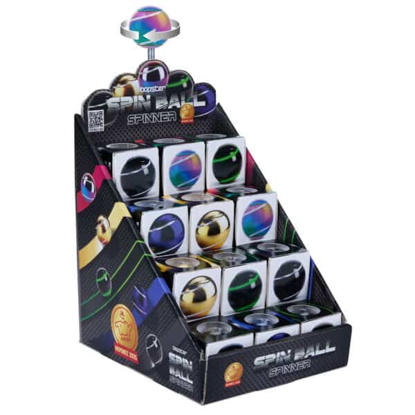 The bopster Spin Balls CDU (Counter Display Unit) contains 30 individually boxed bopster Spin Balls, each with a vibrant finish and a smooth ball-bearing spin mechanism. Designed to catch the eye on countertops and near tills, this CDU is ideal for encouraging impulse purchases and is perfect for toy shops, gift stores, and online fulfillment.